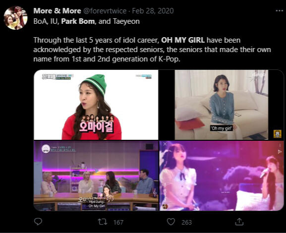 From this article: https://www.soompi.com/article/1126919wpp/oh-my-girl-reveals-celebrity-friends-want-close